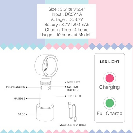 ZERQ9 Eyelash Extension Rechargeable Portable Fan