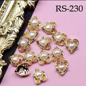 JNBS Alloy with Pearls Crystal Zircon HEART Nail Charm RS230, RS231, RS232