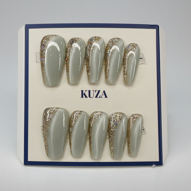 KUZA Press On Nails - Cat Eye and Gold Glitter Design - 8890/8891
