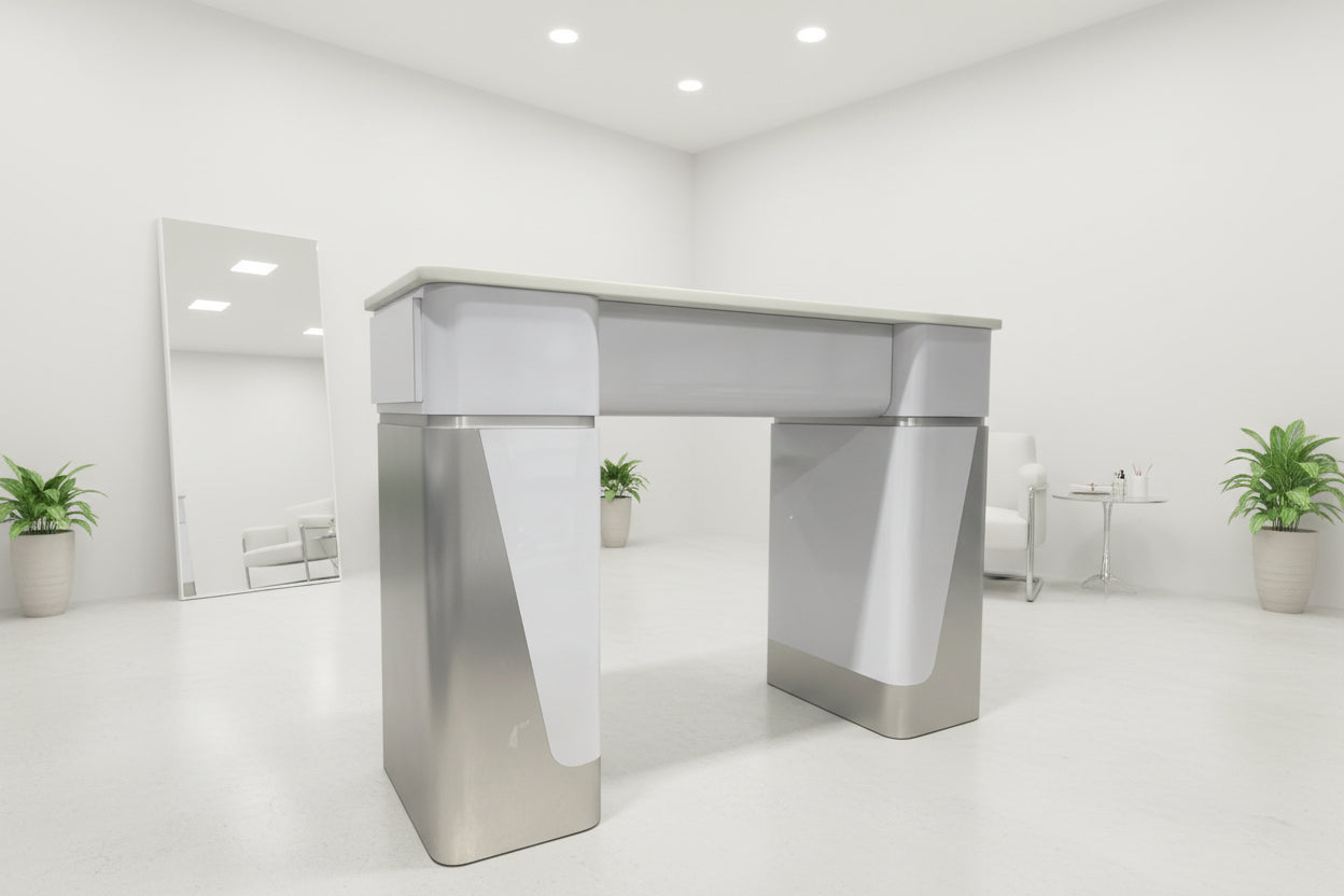 Manicure Nail Table Single JN - 01 White Grey (Please Call JNBS to Order) - Top White - W6 is backordered and will ship as soon as it is back in stock.