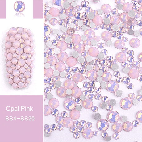 JNBS Rhinestone Opal Glass Round FlatBack Mixed Size Pink