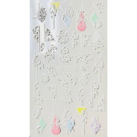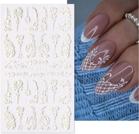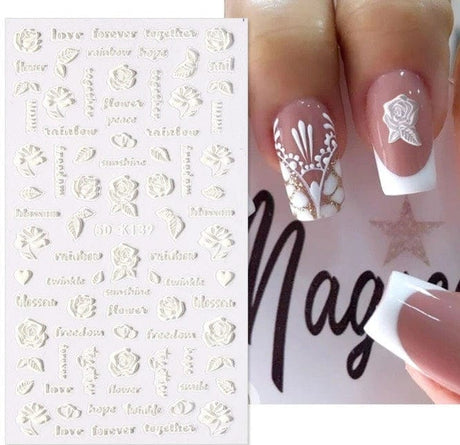 JNBS 5D Embossed Nail Sticker White FLORAL