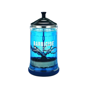 The Barbicide jar is specially designed to safely sanitize various work tools. This disinfectant tool is a must for hygiene and cleanliness in a professional working environment.