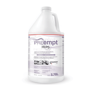 PREempt™ HLD5 is a 2% Accelerated Hydrogen Peroxide™ formulation that provides high level disinfection of tools and implements in only 5 minutes without the use of harsh chemicals. Can be re-used for up to 14 days in a soaking tray, saving you time and money.