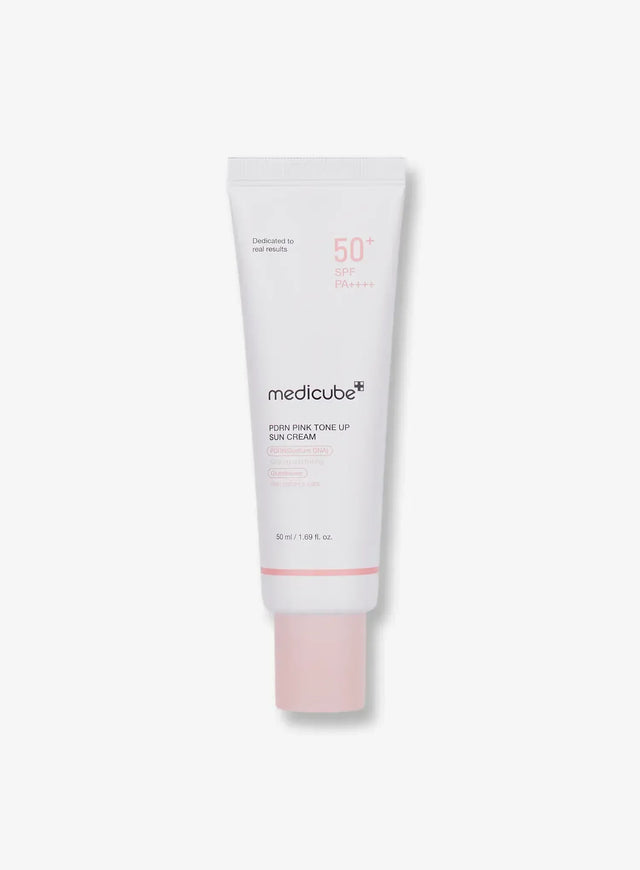 Medicube PDRN Pink Tone Up Sun Cream is a multi-functional daily sunscreen designed to provide SPF 50+ PA++++ broad-spectrum protection while delivering skincare benefits beyond UV defense. This peach-tinted formula incorporates PDRN, glutathione, and niacinamide to help brighten, even skin tone, and support skin’s radiance, all while hydrating and firming the complexion. With a lightweight, easy-washable, waterproof, hypoallergenic formulation that leaves a natural luminous finish without a white cast, this sunscreen integrates seamlessly into makeup and skincare routines.