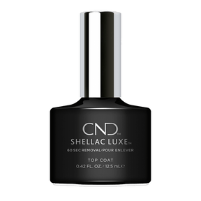 - Finish with CND Shellac Luxe Top Coat, curing for 60 seconds to create a flawless, glossy finish.