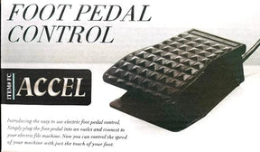 The Accel Professional Foot Pedal Control provides hands-free speed control for electric nail files, making it easier to adjust speed while performing manicures and pedicures. This foot pedal allows for precise control over the speed, helping professionals enhance their workflow.